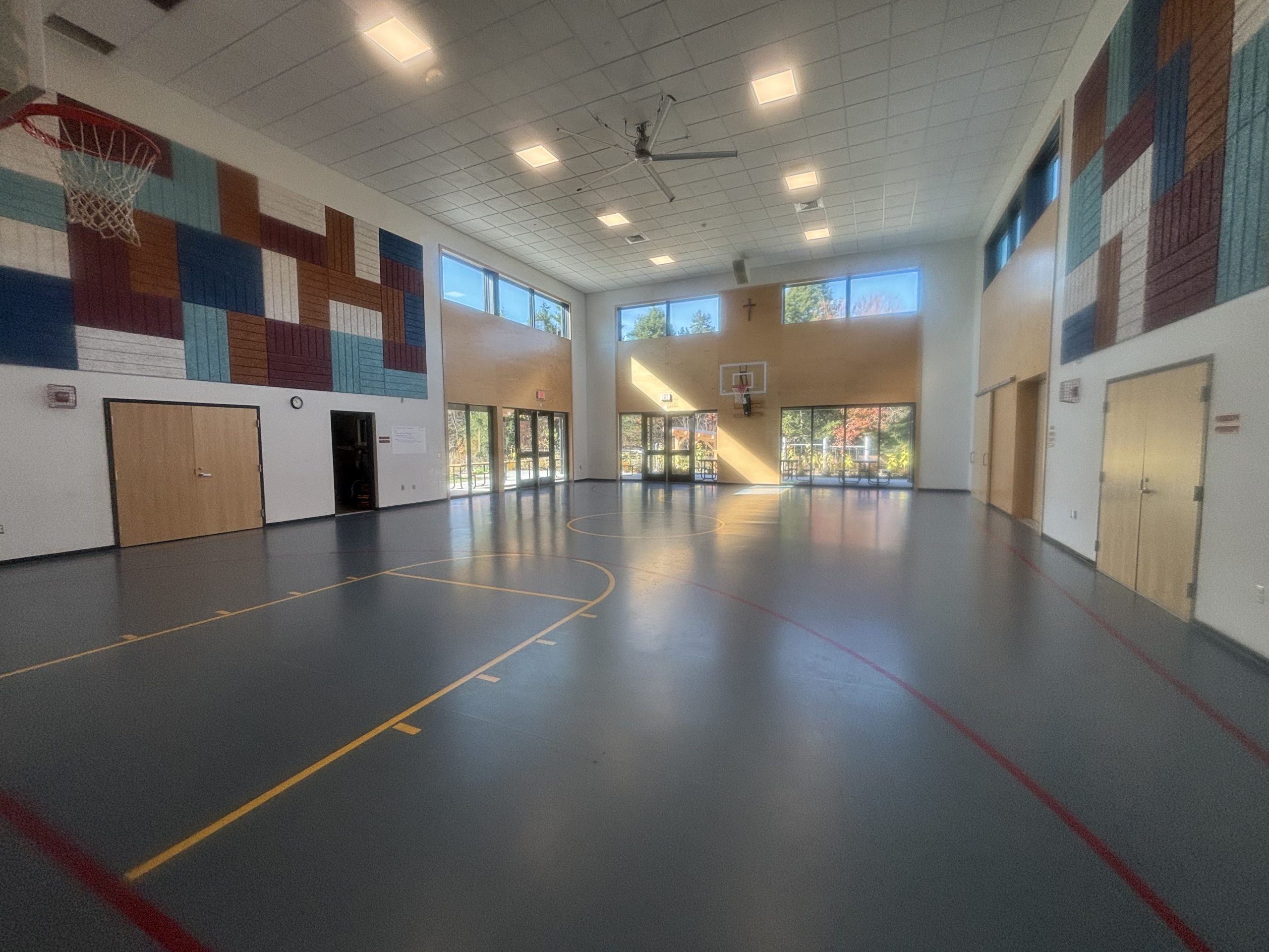 At the center of the building are the administrative offices, Chapel, and Multi-Purpose Room (MPR) which is used for Mass, lunch, and physical education.